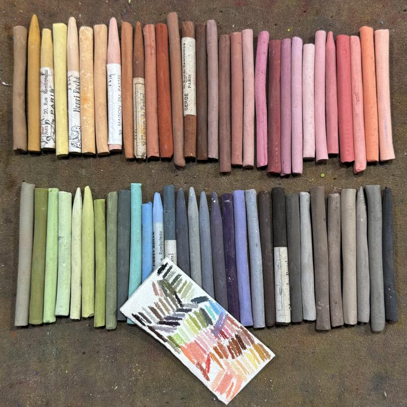 These handmade semi-hard pastels from the late 19th/early 20th century have characteristics similar to Roché soft pastels, but are firmer in texture in order to render finer lines. Very well suited for portraiture. Web exclusive