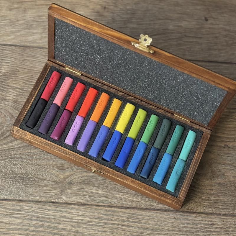 This limited series of unique half-sticks made from small, leftover batches of pigments put aside throughout the years, is available for 30% less than comparable products in our official range.Web exclusive. (For availability in Paris, please contact us in advance.)