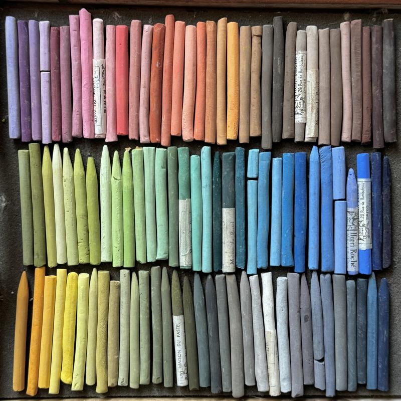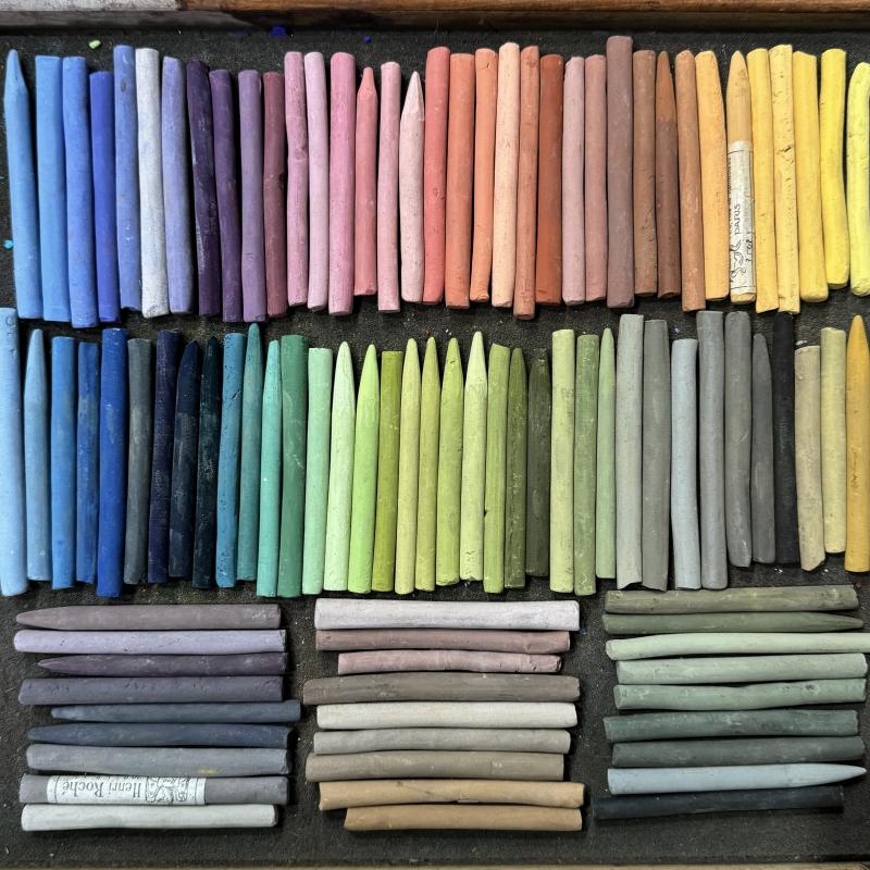 These handmade semi-hard pastels from the late 19th/early 20th century have characteristics similar to Roché soft pastels, but are firmer in texture in order to render finer lines. Very well suited for details. Web exclusive